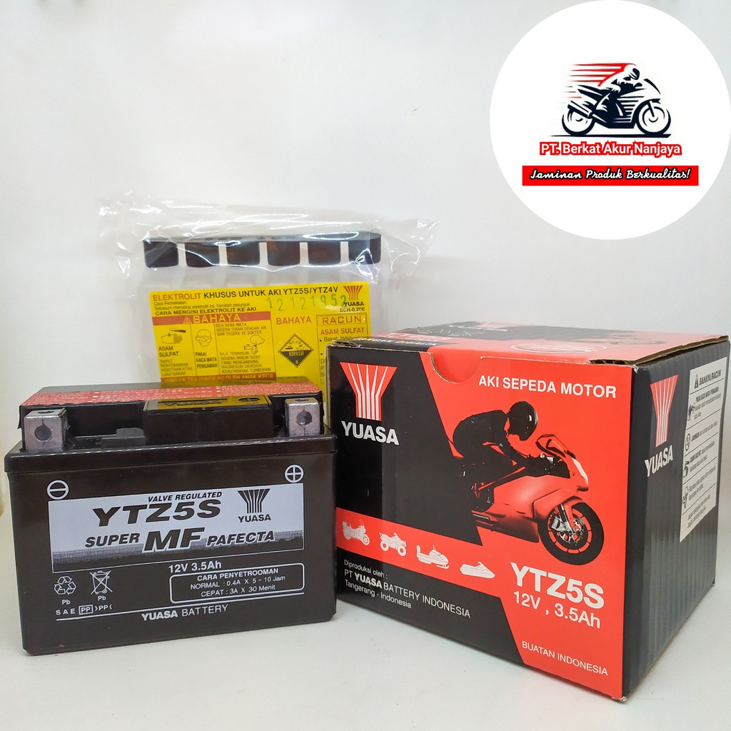 Yuasa YTX9-BS MF Aki Motor Rp615000 Yuasa YTX7L-BS MF Aki Motor Rp575000 Yuasa Suku Cadang Motor Aki Kering YTZ-5S MF ACK1081 Rp220000 Aki Motor Yuasa YTZ5-S MF Rp205000 Yuasa YTZ5-S MF Aki Motor Rp180000. Untuk Motor BYSON MIO SOUL 2006 NEW SCORPIO Z VIXION 2007 XEON XEON RC X-RIDE SUPER MOTO 120 ABSOLUTE REVO. Pembayaran mudah pengiriman cepat bisa cicil 0.