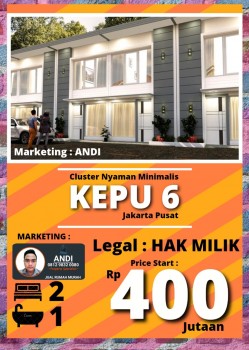 Rp 440000000 2 KT - 1 KM - 40 m2 Cluster Daun kepu 6. - Harga mulai. Lokasi Kepu Gg 6 Kepu Selatan Kemayoran - Jakarta Pusat.